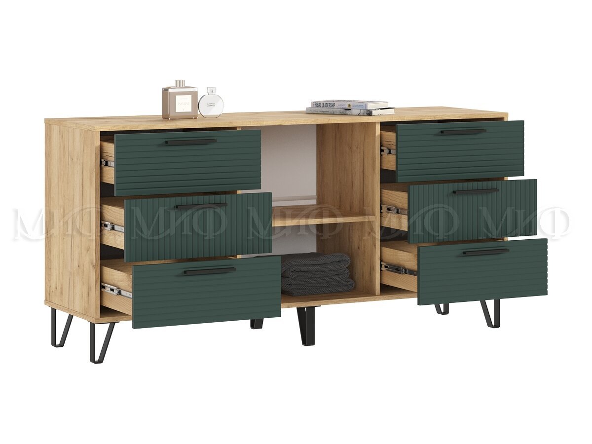 Комод (1500) Флэш Браш Мени Грин, Дуб Крафт