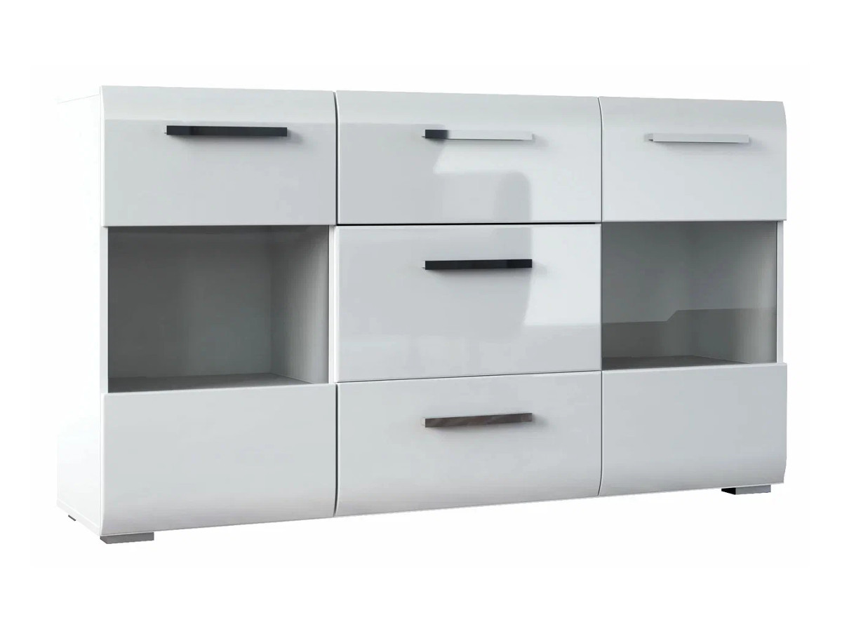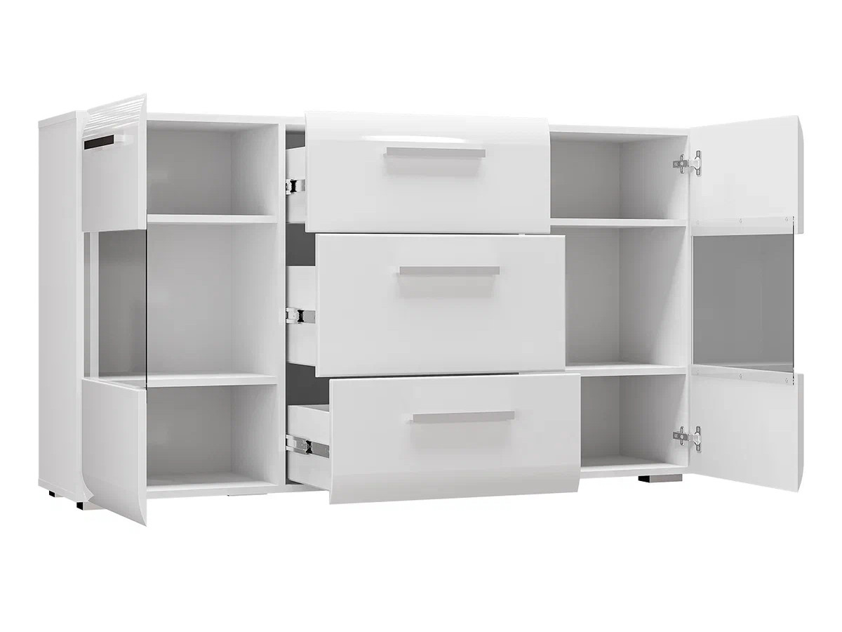 - Комод 3 ящика 2 двери со стеклом Домино белый