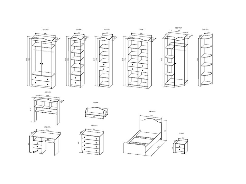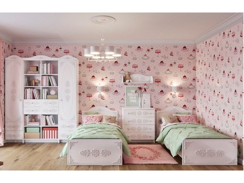 Стоимость зависит от комплектации. Цена указана за комплект на фото: КРД900.1 Кровать - 2 шт, ПЛД800.1 Полка, КМД800.1 Комод , СД900.1 Стеллаж 900, ШД450.1 Шкаф - 2 шт