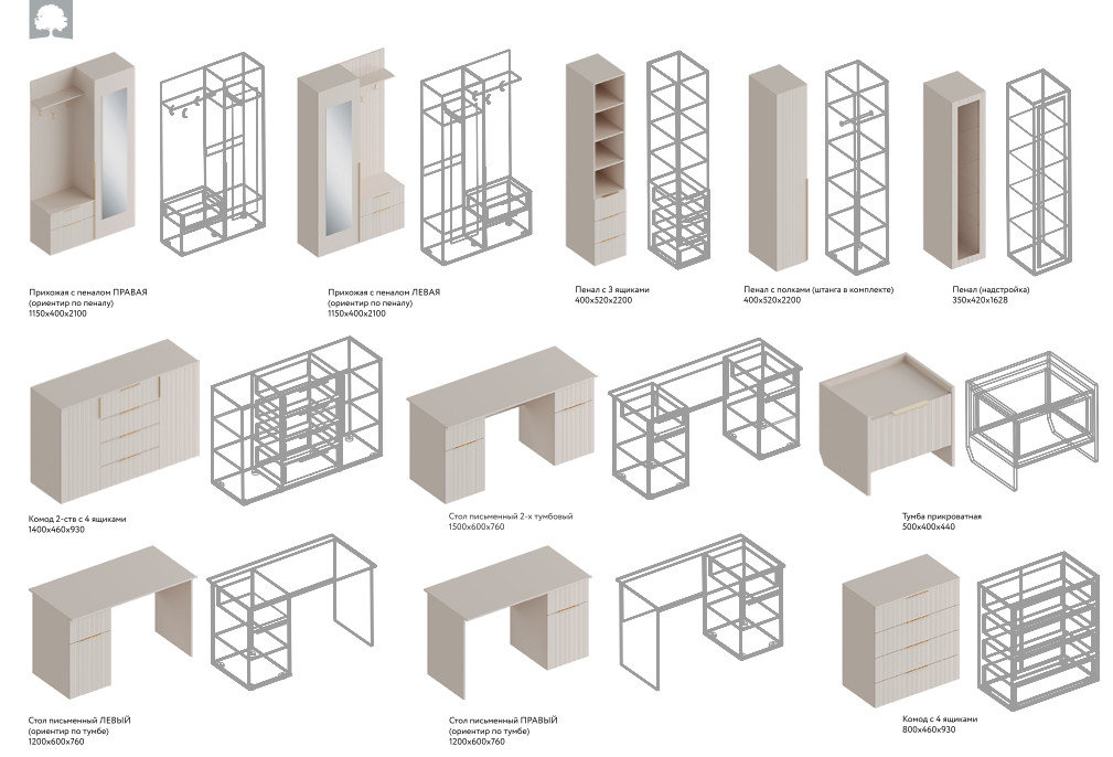 Цена за комплект: Пенал с полками (2шт), Кровать с 2 ящиками, Шкаф угловой, Пенал с 3 ящиками, Стол письменный, Полка настенная №3