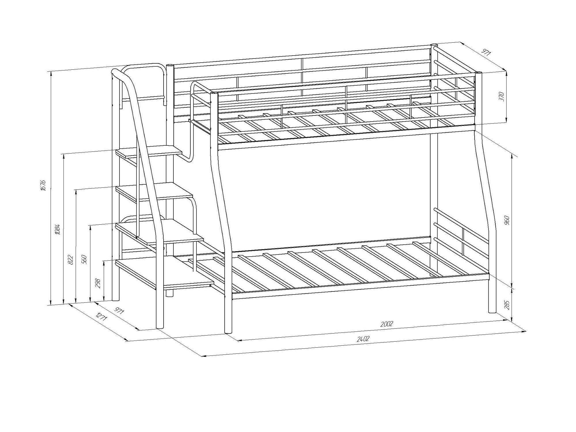 Размер нижнего спального места: 1200х1900 мм