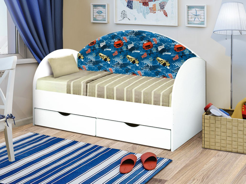 - Кровать с продольной мягкой спинкой Софа №11 гонщик