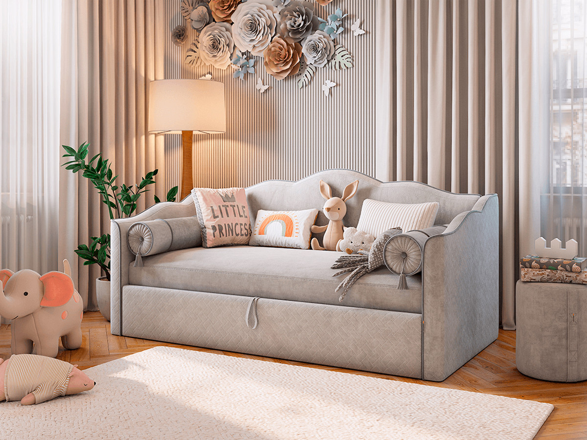 Дополнительно скомплектуйте кровать-софу матрацем 90х200см и наматрасником в цвет обивки.