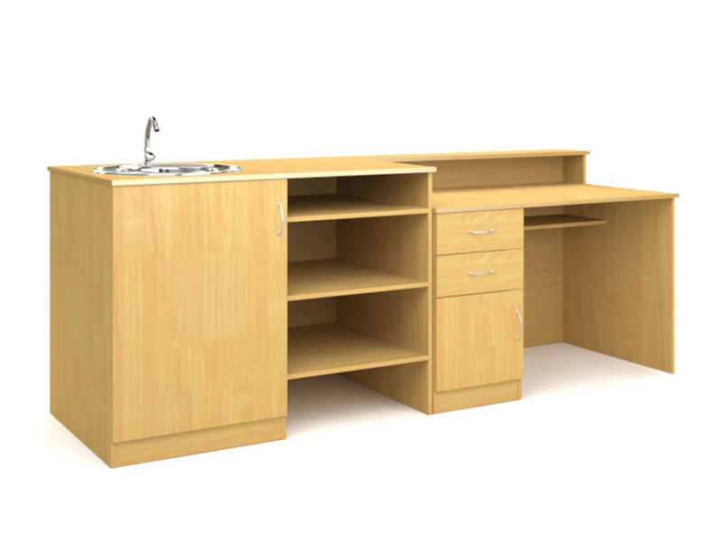 Стол демонстрационный со встроенной металлической раковиной позволяет проводить учебные опыты и ставить практические эксперементы в удобных условиях. В нем предусмотрено все необходимое для полноценного ведения учебного процесса. Оборудован большим количеством полочек и ящиков для хранения. Изготовлен из ЛДСП толщиной 16 мм с кромкой ПВХ 0,45 мм.