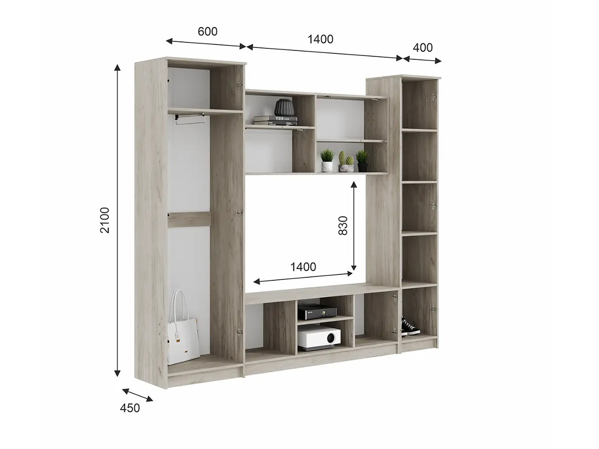 Ниша под ТВ: 1400х830 мм для моделей телевизоров с диагональю до 43″