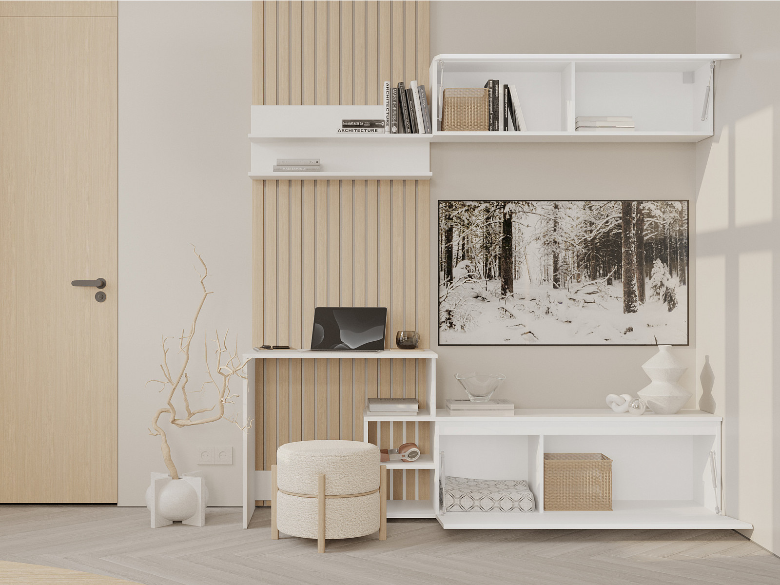 Ручки: Интегрированные ручки, ЛДСП 16 мм,Белый