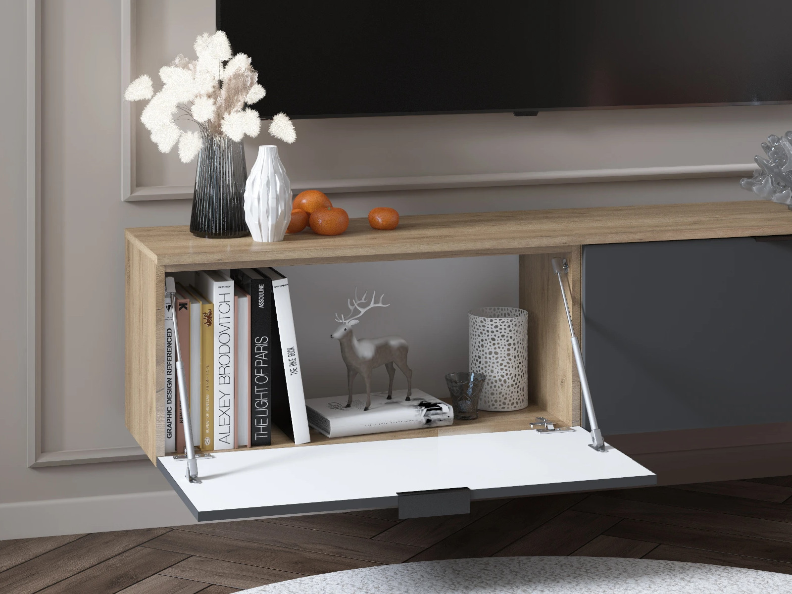 Тумба ТВ Осло 22 ручка торцевая Дуб золото/Графит Софт