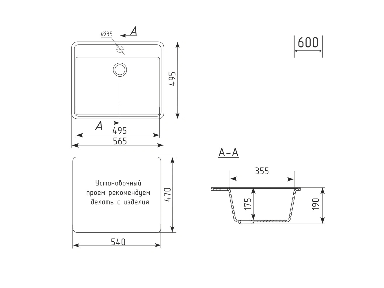 - Кухонная мойка Uperwood ECON UPD-104-004 черная матовая