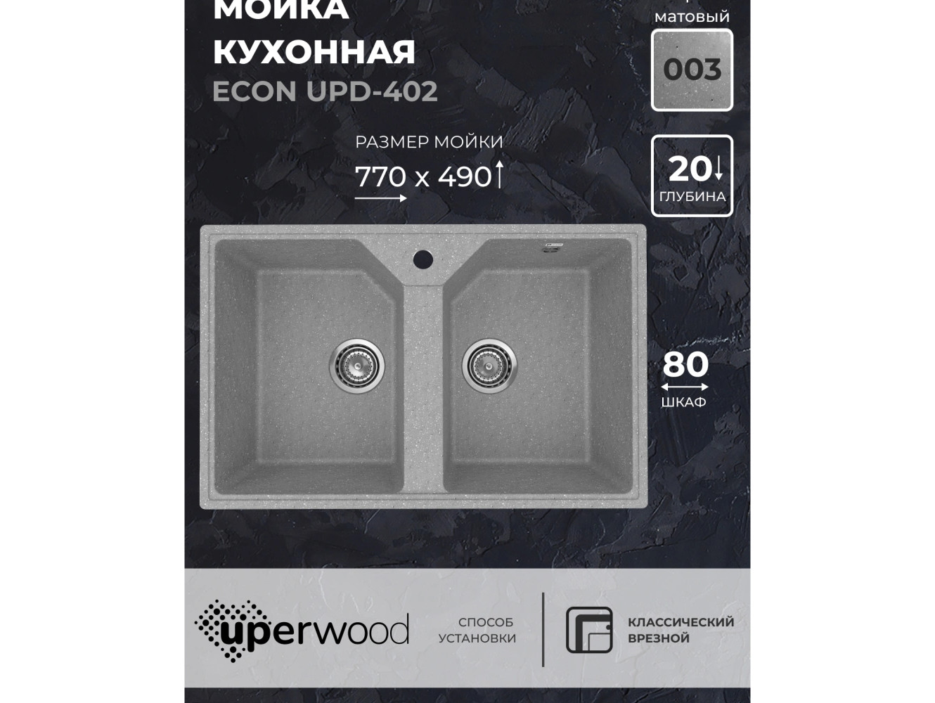 - Кухонная мойка Uperwood ECON UPD-402-003 серая матовая