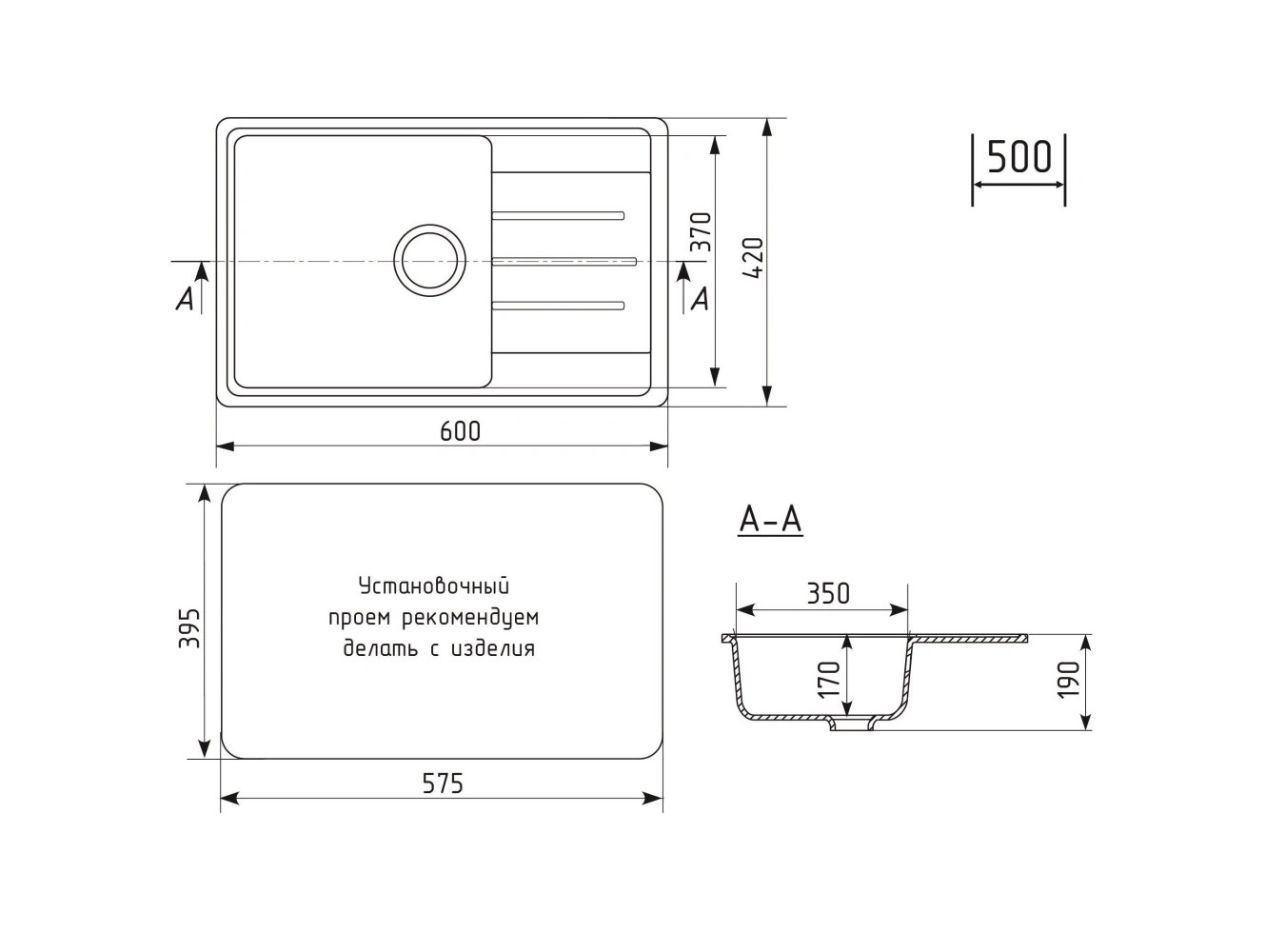 - Кухонная мойка Uperwood ECON UPD-506-003 серая матовая