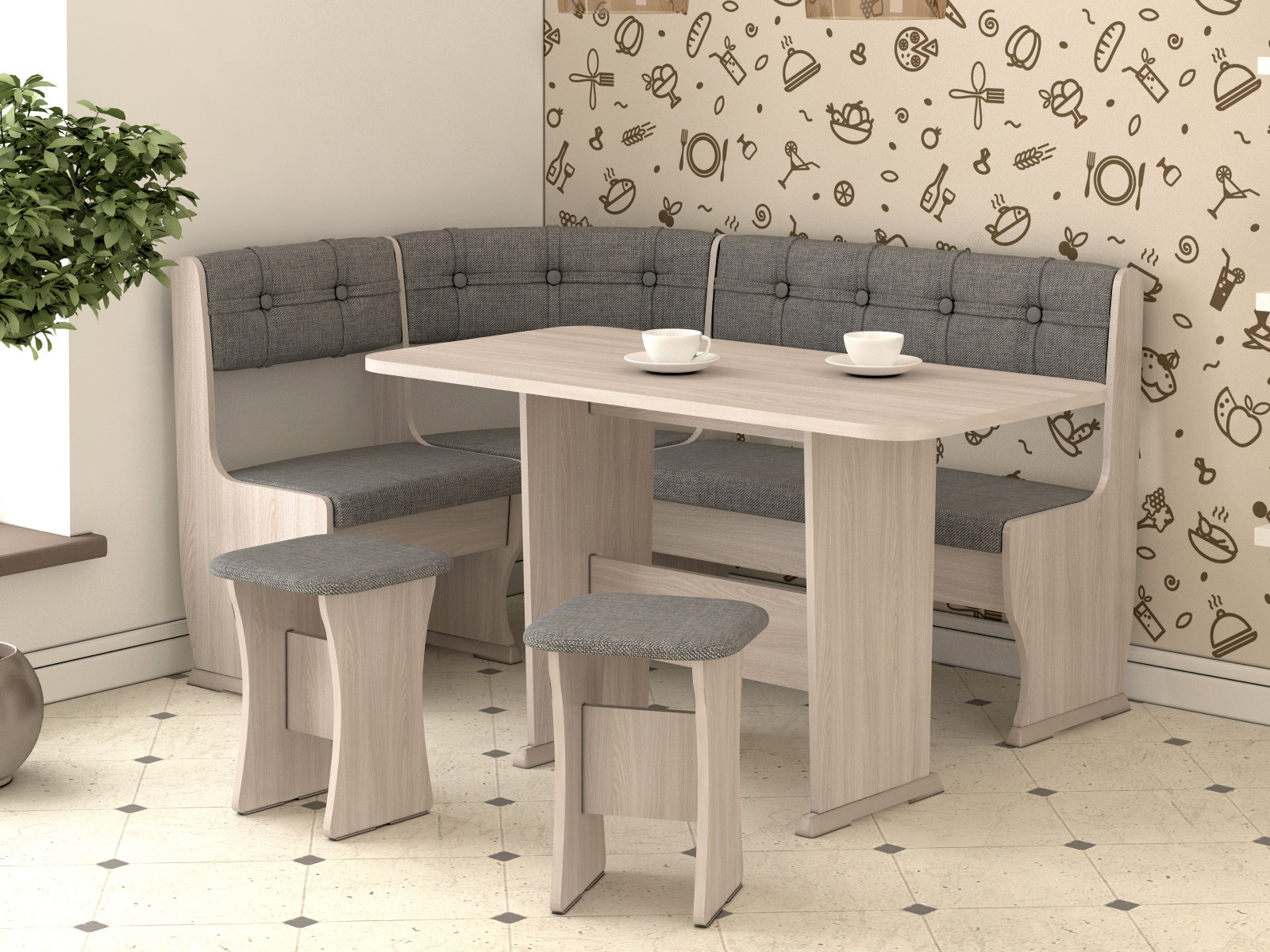 - Кухонный уголок Ника-1 Люкс ясень шимо светлый-серый