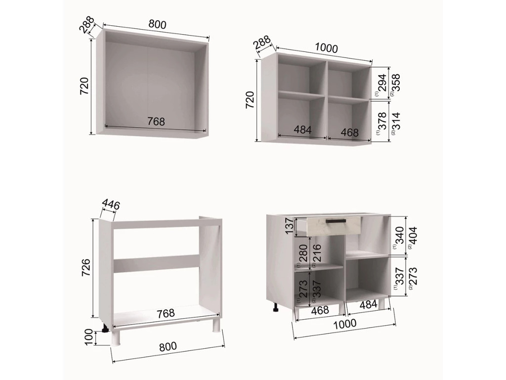 - Высота верхних шкафов, мм 720