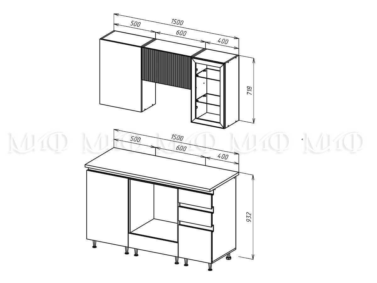 - Кухня Техно-6 1500 мм Графит/Белый снег софт