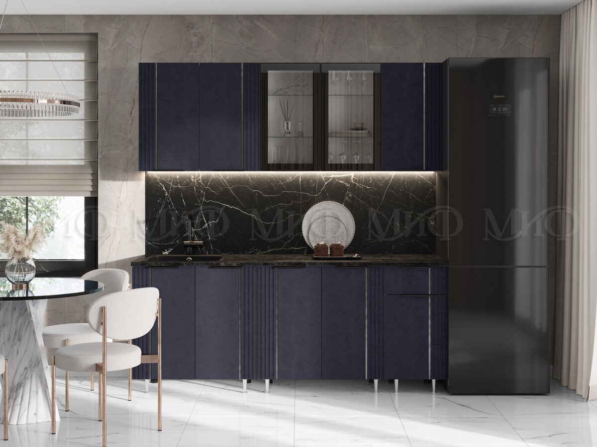 - Кухня Виктория 2000 мм Пластер Индиго/Белый (Кастилло темный)