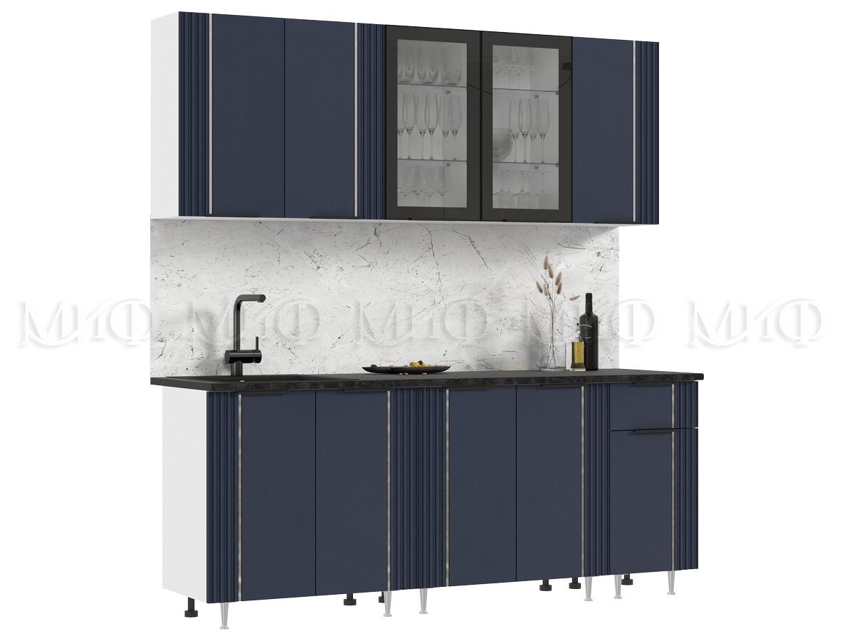 Кухня Виктория 2000 мм Пластер Индиго/Белый (Кастилло темный)