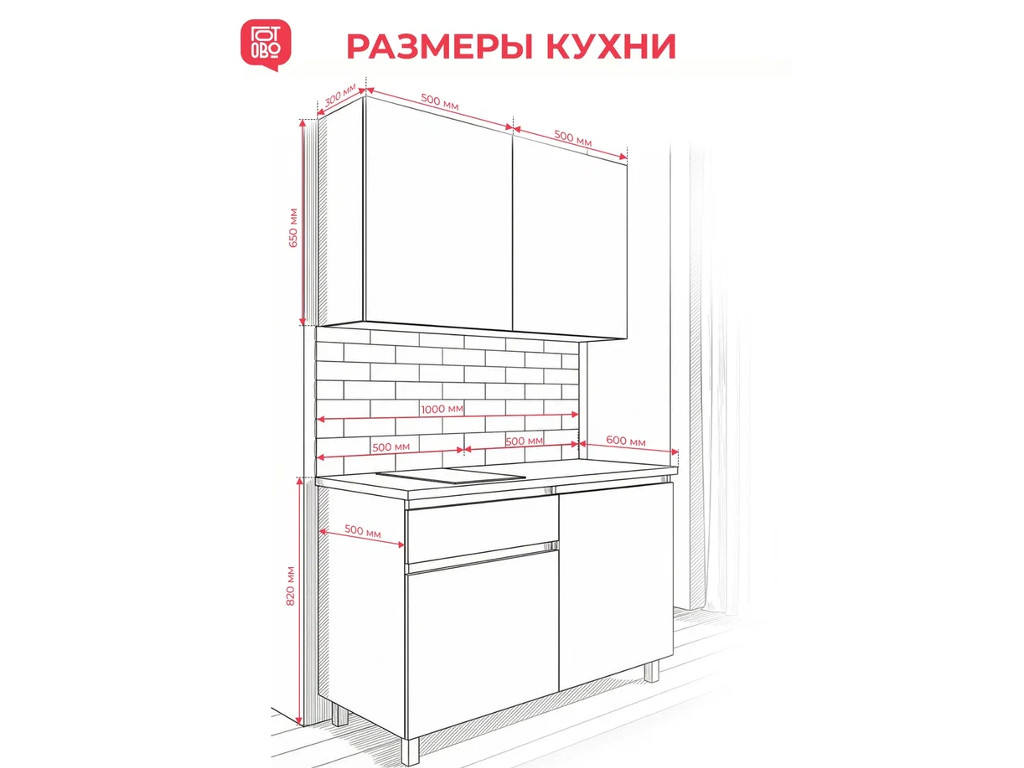 - Кухонный гарнитур 1000 мм со столешницей