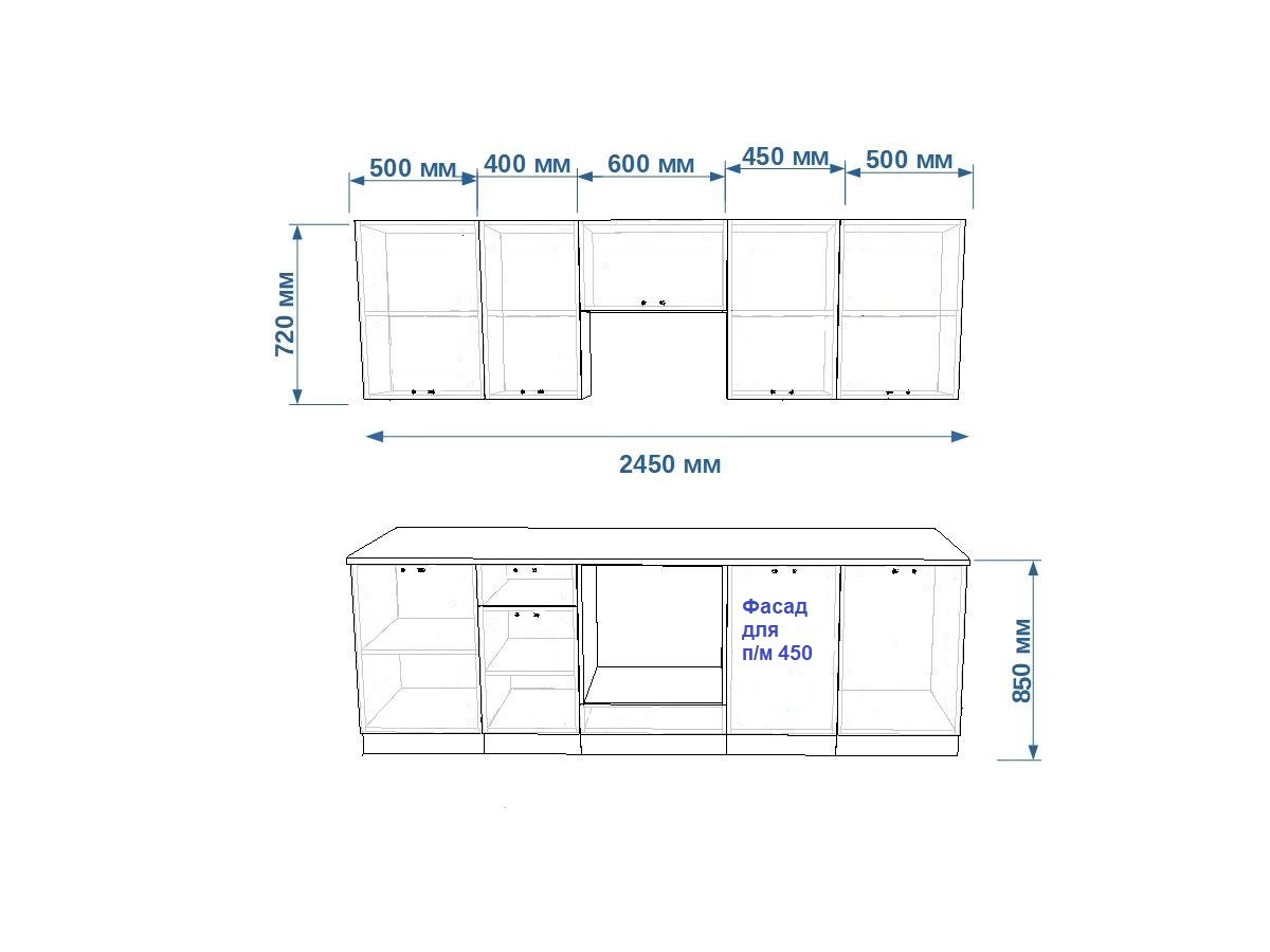 Кухонная мойка, стеновая панель, посудосушитель, планки для столешницы в комплект не входят.