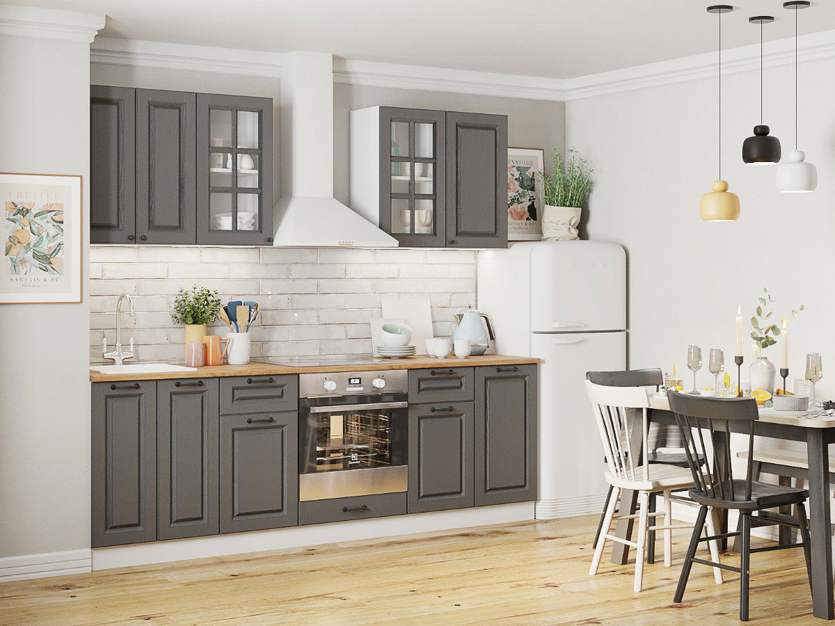 - Кухонный гарнитур Африканское Лапачо графит 2400 мм