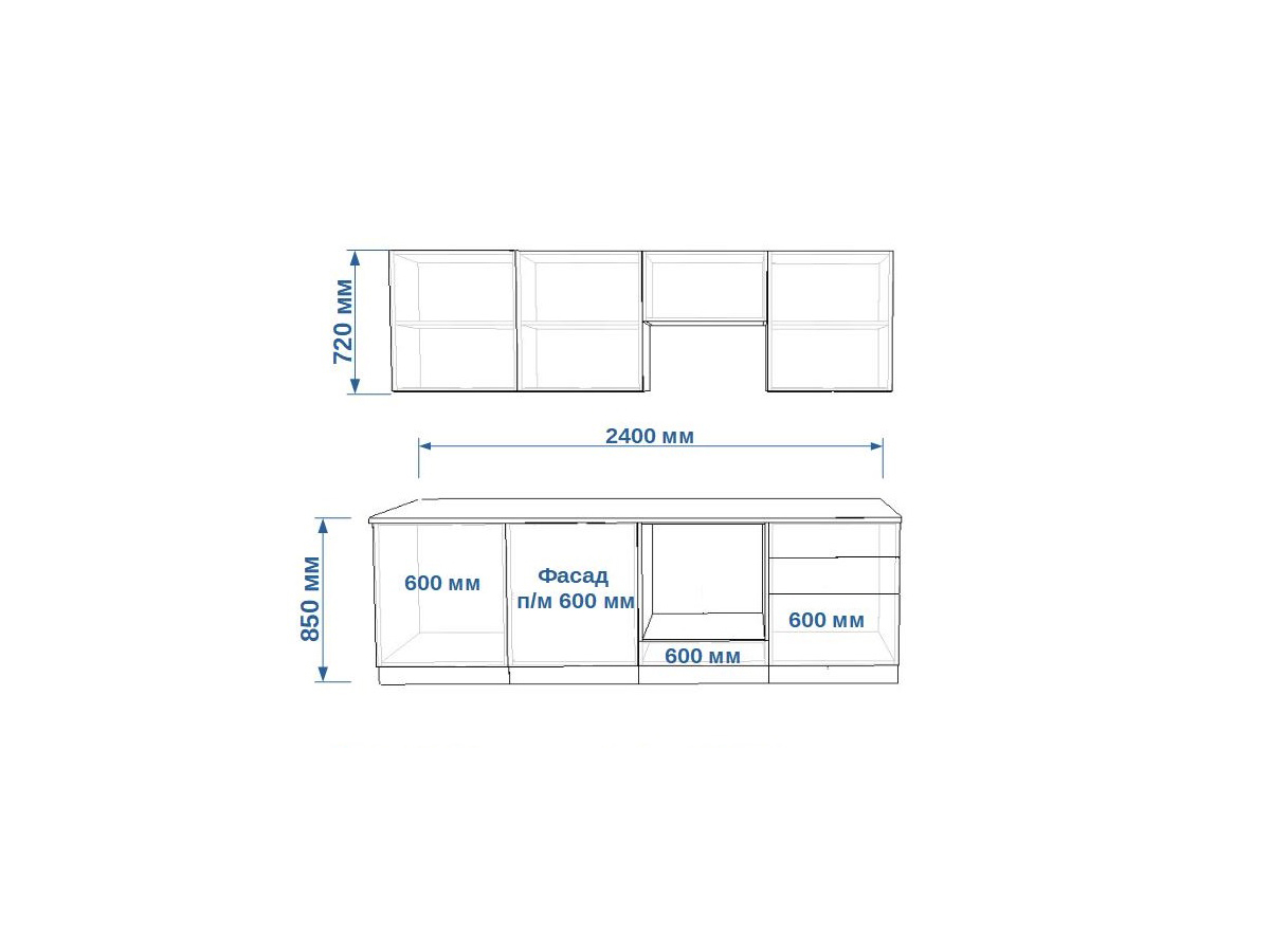 - Кухонный гарнитур арт 13 Фаска Тальк Обсидиан 2400 мм