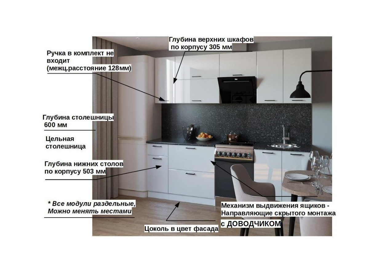 - Кухонный гарнитур арт 14 Белый глянец 2600 мм