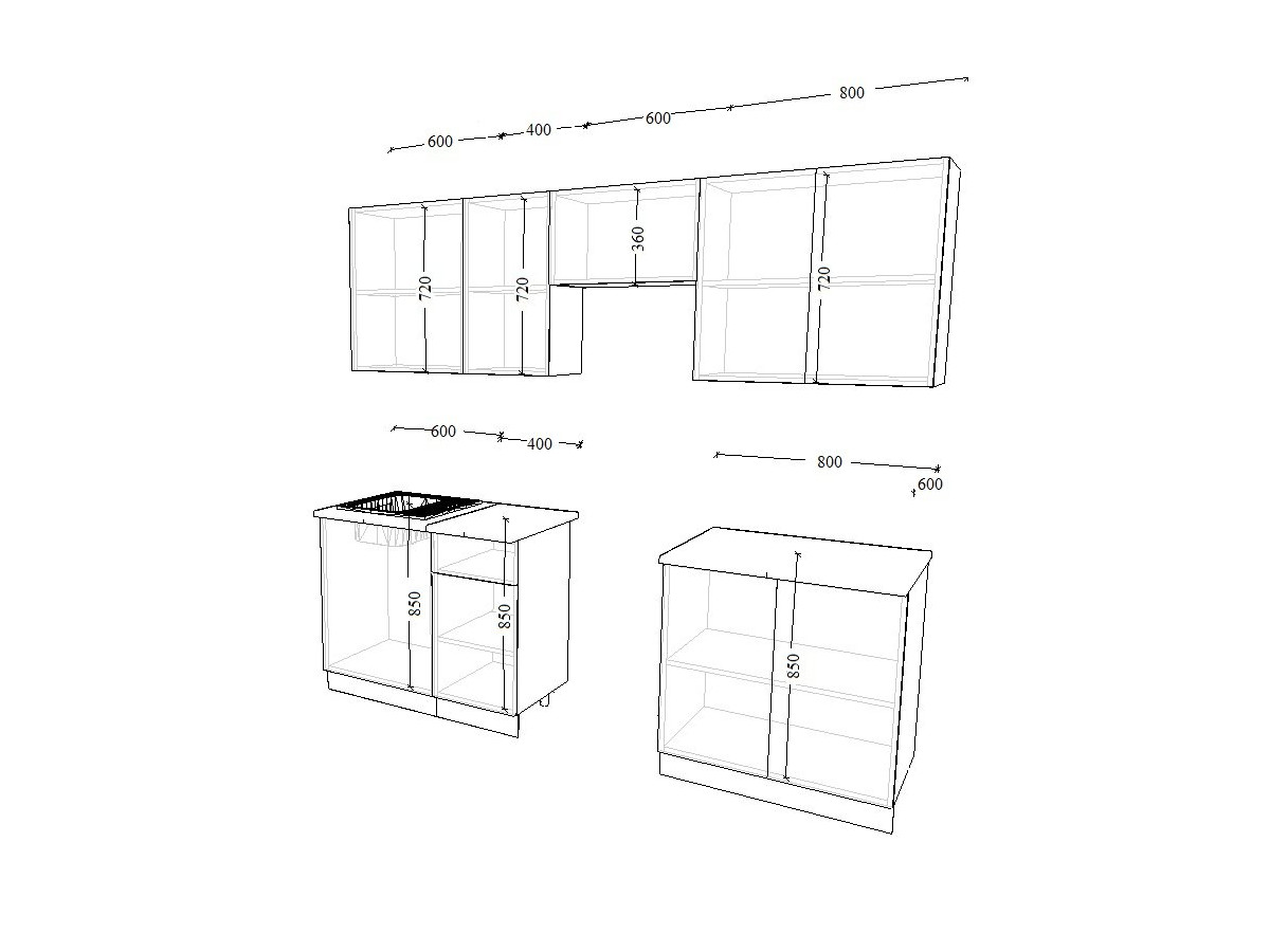 Кухонная мойка, стеновая панель, посудосушитель, планки для столешницы в комплект не входят.