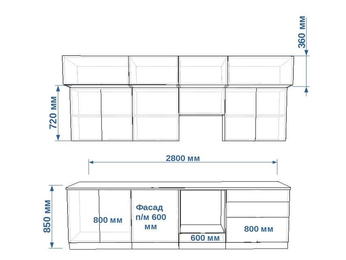 - высота верхних шкафов 720 мм