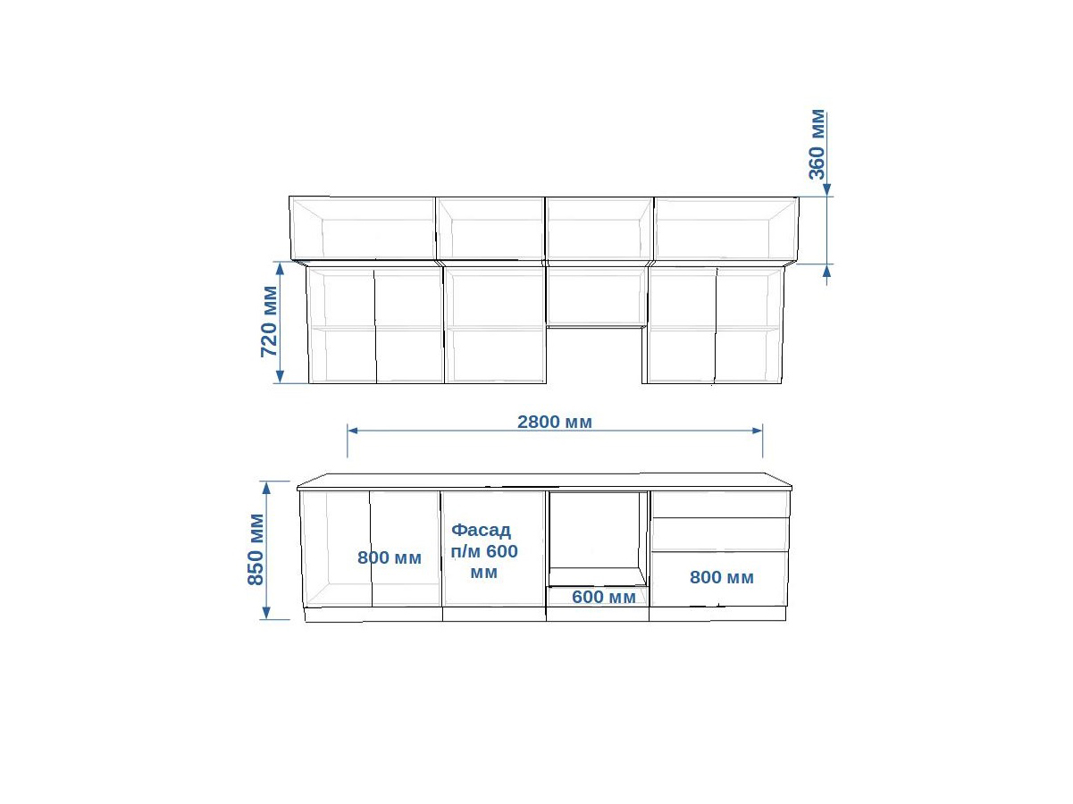 - высота верхних шкафов 720 мм