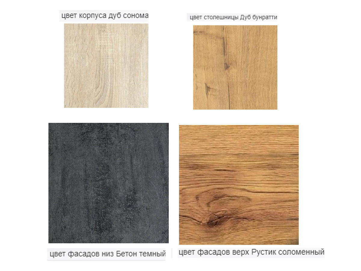 Кухонная мойка, стеновая панель, посудосушитель, планки для столешницы в комплект не входят.