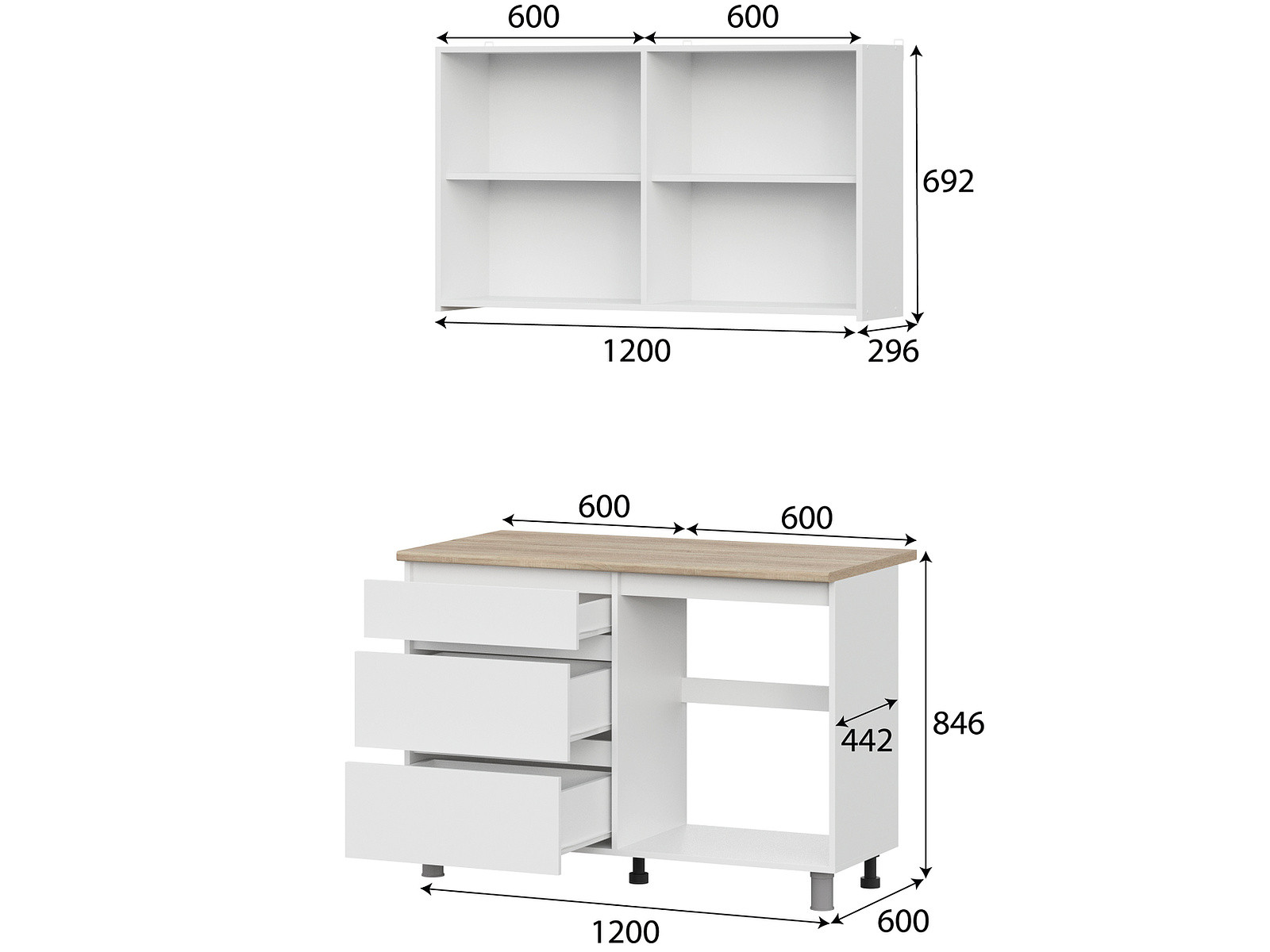 - Кухонный гарнитур Денвер 1200 Белый текстурный