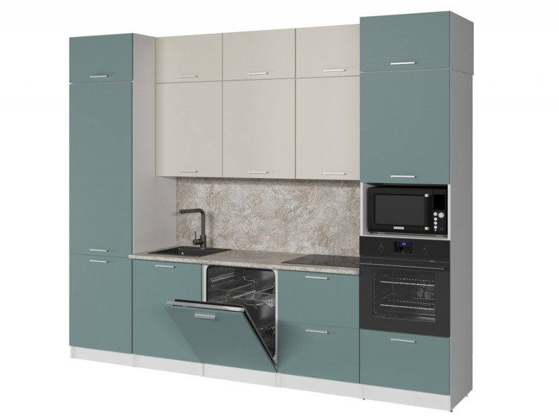 Мойка, смеситель, стеновая панель и посудосушитель в комплект гарнитура не входят.