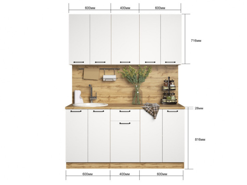 - Кухонный гарнитур Хелмер 1600 мм ЛДСП Вотан/Белый