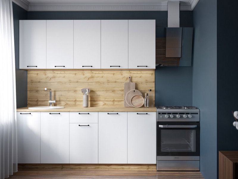 - Кухонный гарнитур Хелмер 2000 мм ЛДСП Вотан/Белый