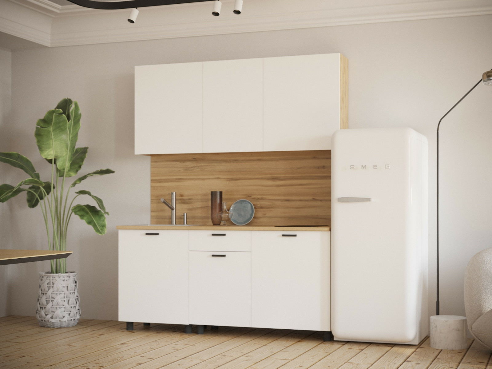 - Кухонный гарнитур Норди 1700 мм ЛДСП Вотан/Белый