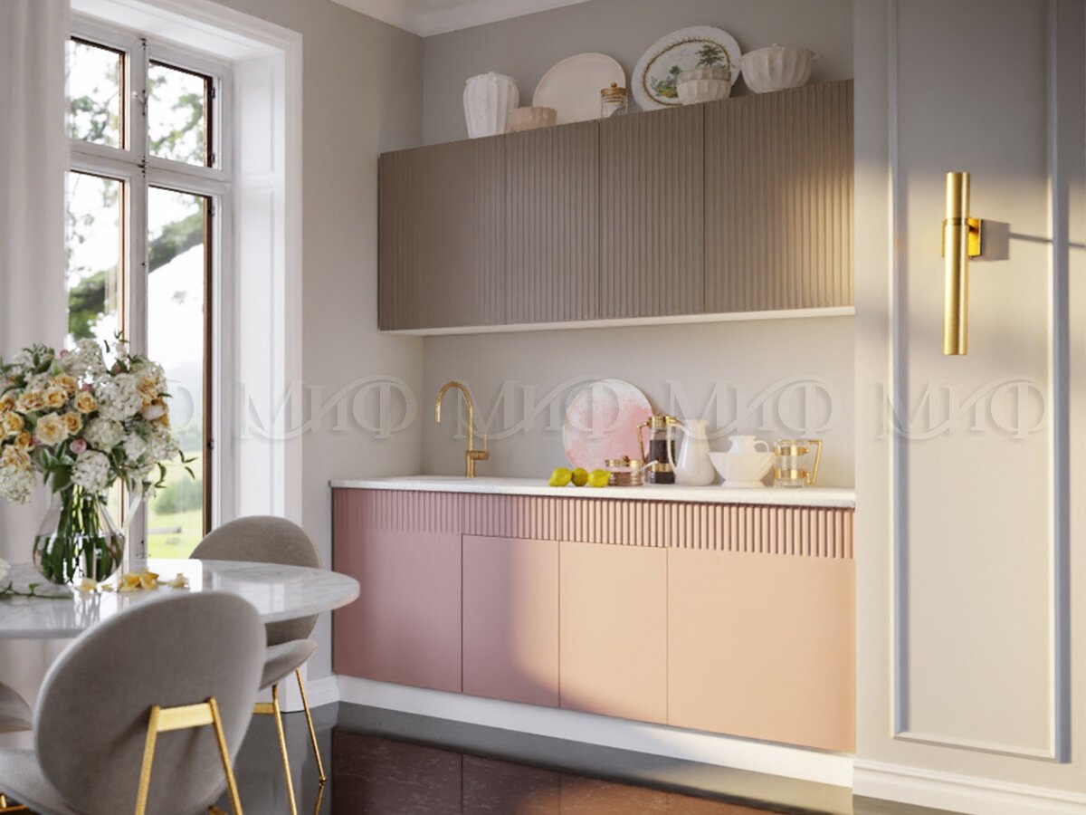 - Кухонный гарнитур Оливия 2000 Шарли Мокко/Шарли Pink