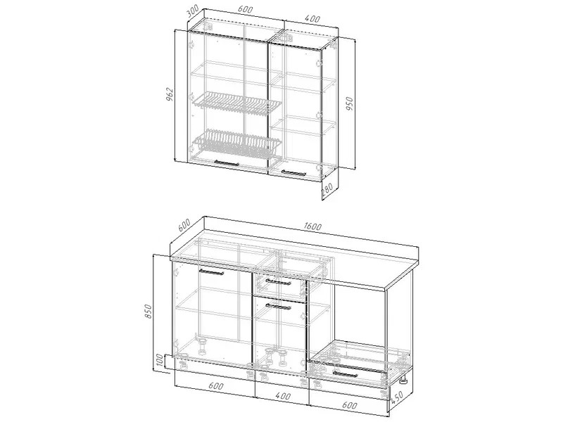 - Столешница: ЛДСП 26мм со скругленным краем (в пластике)