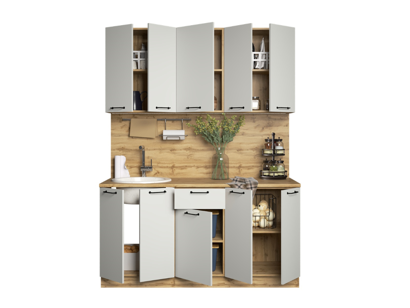- Кухонный гарнитур Валерия 1600 мм МДФ Вотан/Серый