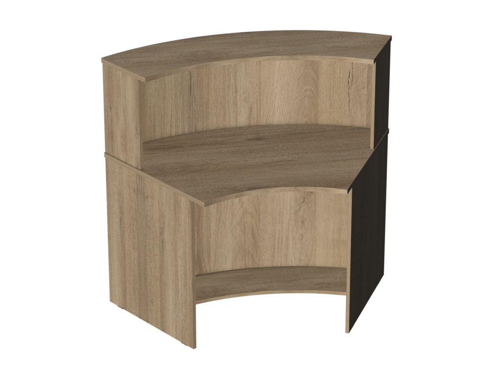 Модуль угловой 60 град. Р.Му-60 Референт является закругленным столом с радиусной надстройкой. Торцы модуля располагаются оностительно друг друга под углом 60 градусов. Применяется в формировании стойки регистрации сложной конфигурации.