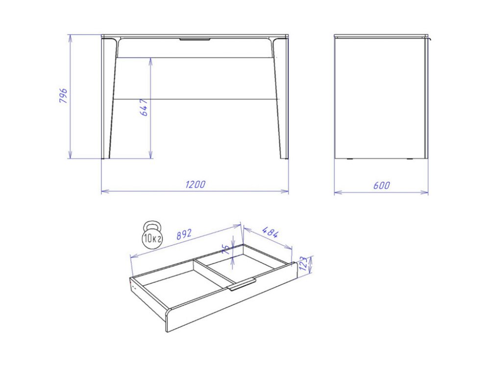 Размер ШхГхВ: 1200*600*796 мм