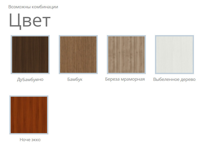 Цвет: Выбеленное дерево, Ноче экко, Дуб Галиано, Береза мраморная, Ольха светлая, Капучино, Бамбук. Возможны комбинации