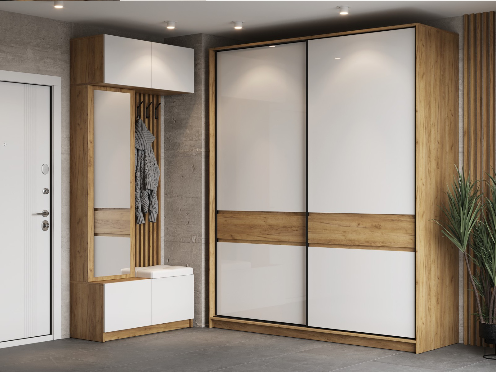 Модульная прихожая Бостон МДФ белый со шкафом купе