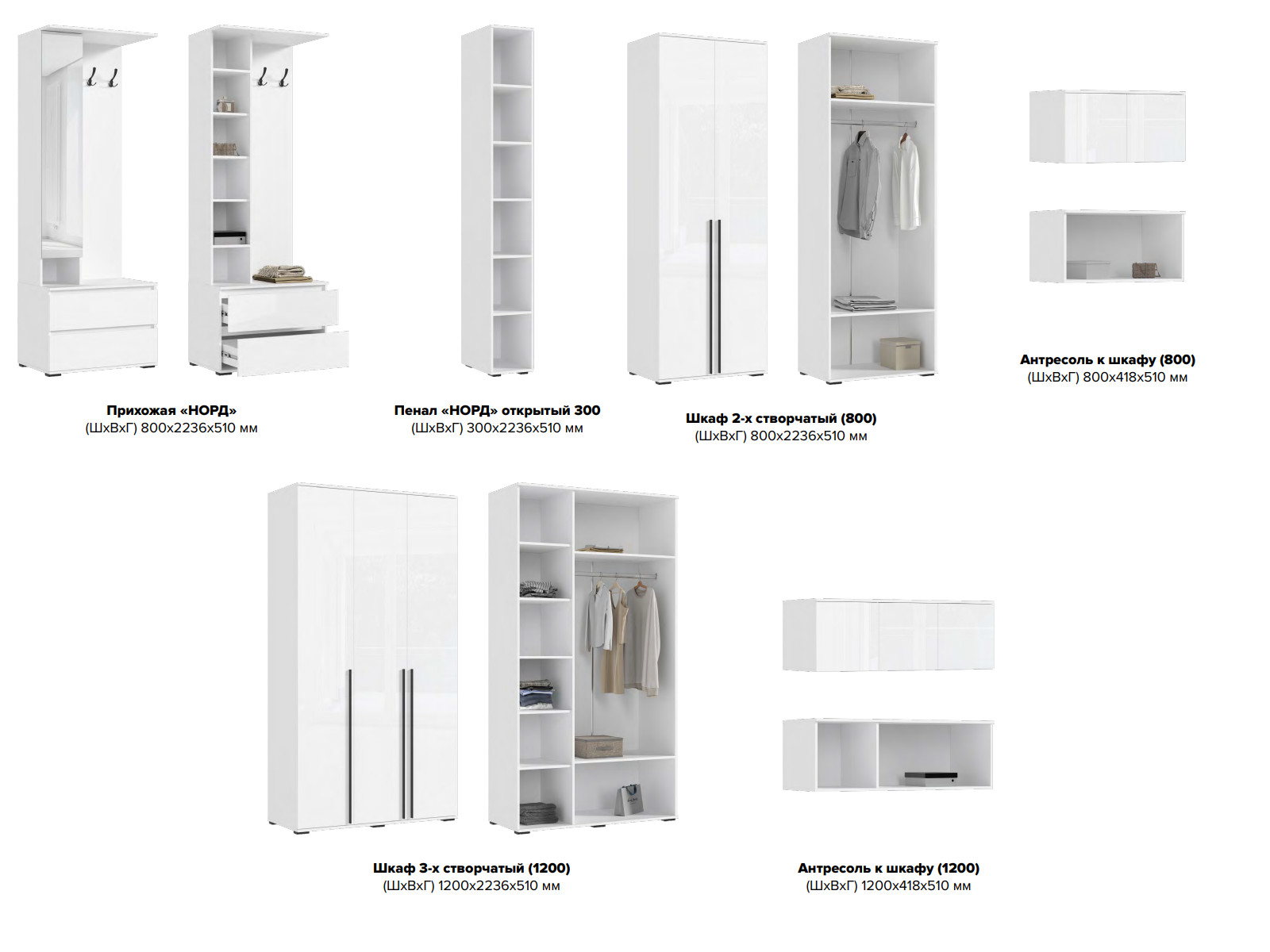 - Прихожая модульная Норд Белый глянец холодный