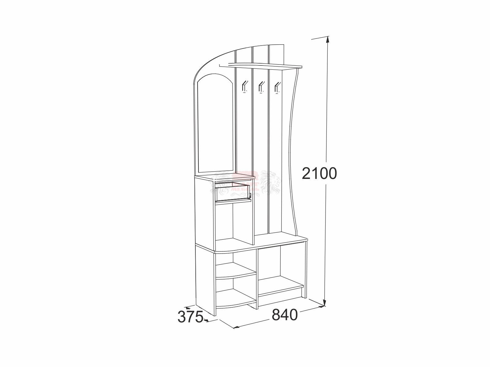 габариты (ВхШхГ): 2100х840х375 мм