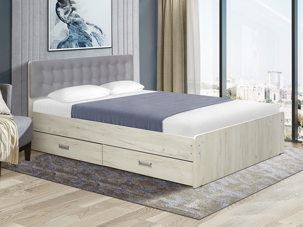 - Кровать двойная №6 с ящиками 1200х2000 с мягкой спинкой