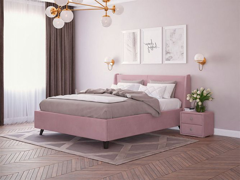 - Кровать Лорен с ПМ 1200х2000 мм микровелюр розовый