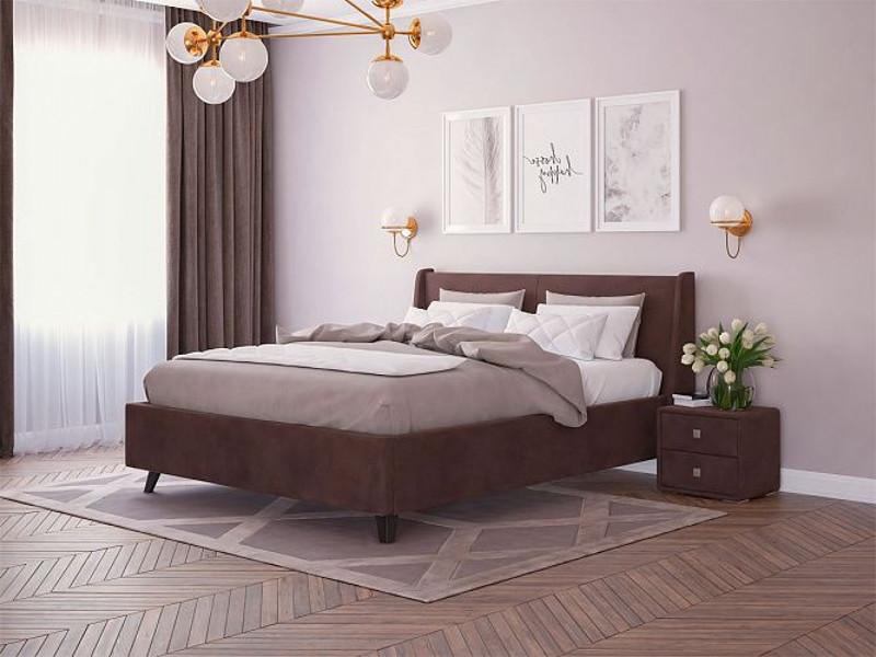 - Кровать Лорен с ПМ 1400х2000 мм микровелюр шоколад