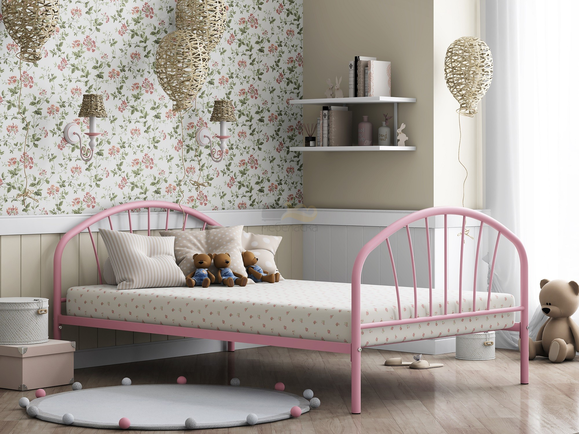 - Кровать металлическая Эвора 120 Розовый
