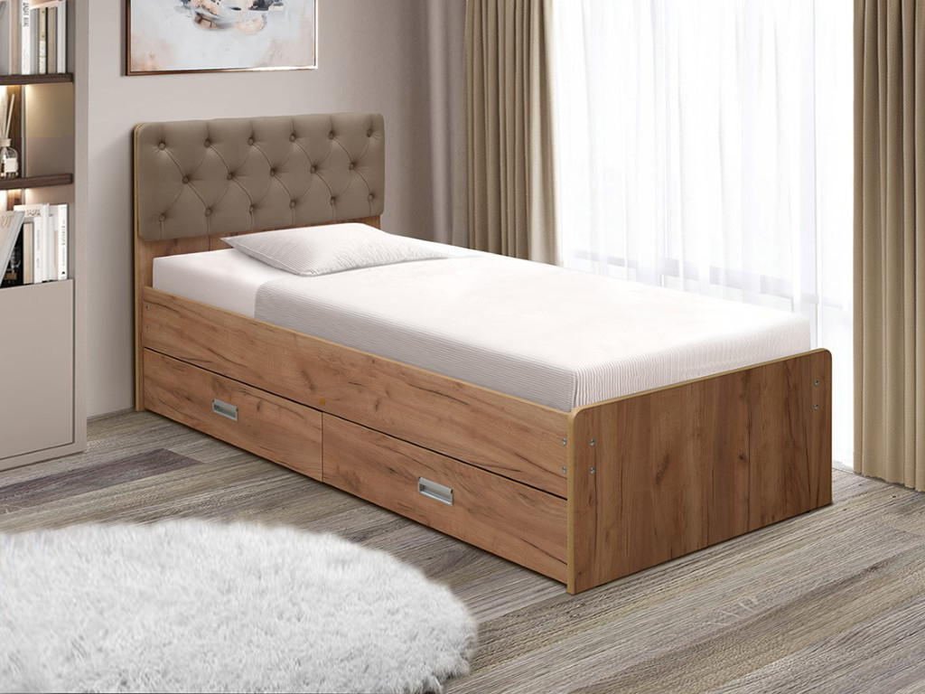 - Кровать одинарная №7 с ящиками 800х2000 мягкая спинка каретная стяжка