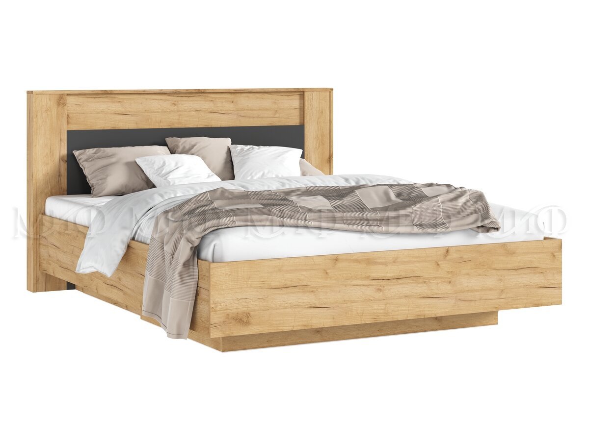 - Кровать парящая 1600 Остин (с ПМ) Графит/Дуб Крафт