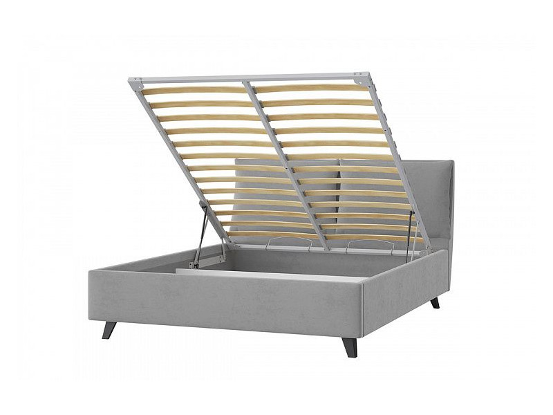 - Кровать Сандра с ПМ 1600х2000 мм микровелюр светло-серый