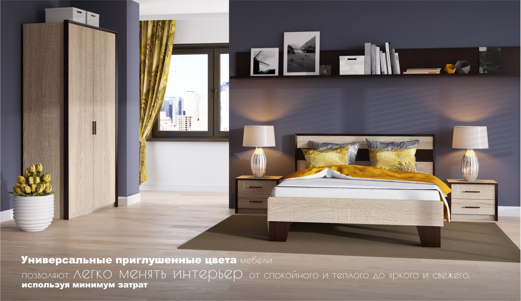Спальня модульная, комплектуется по вашему выбору. Цена указана за комплект на главном фото - тумба прикроватная, шкаф 2 дверный, кровать 140